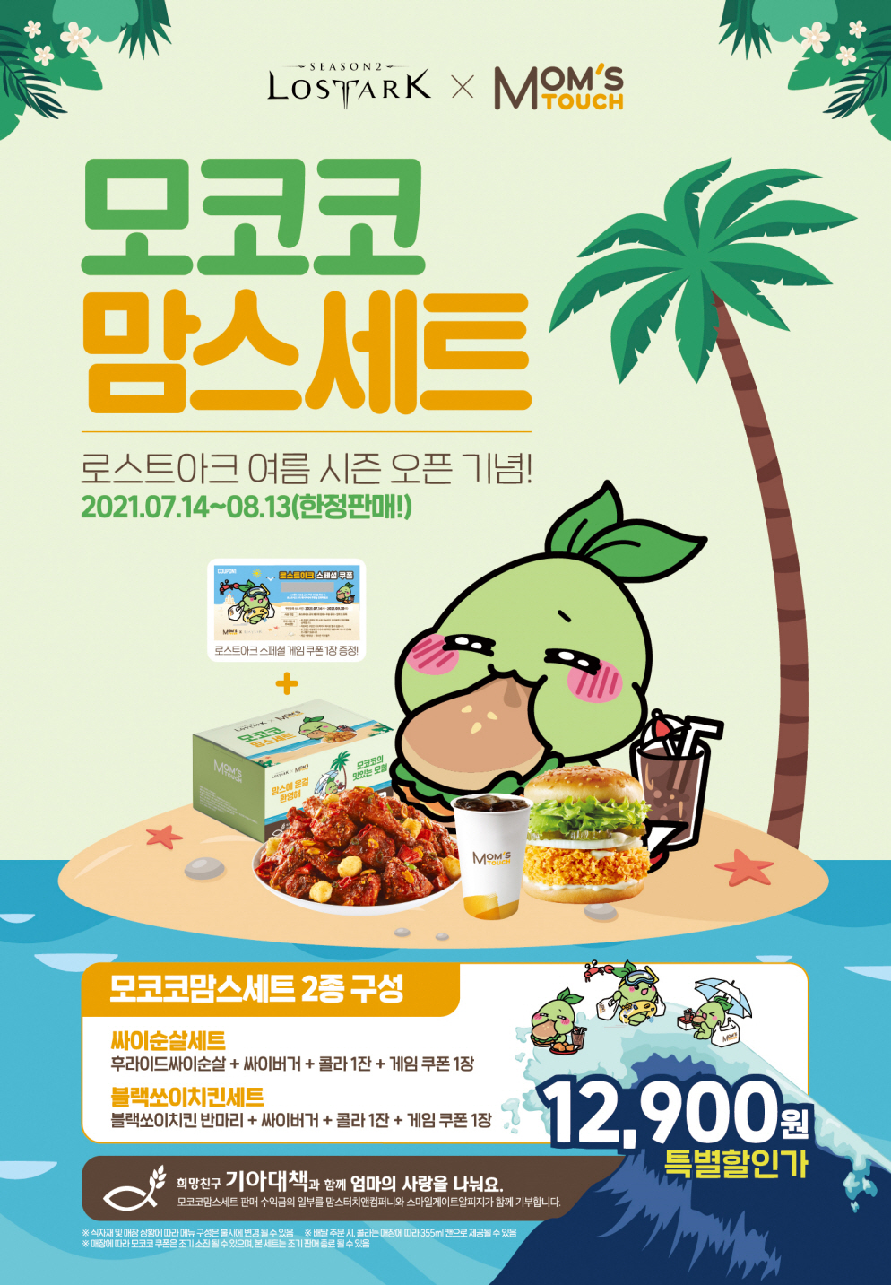 맘스터치 (momstouch.co.kr)는 스마일게이트 알피지의 "로스트아크 "와 협업한 모코코 맘스 세트 2종을 8/13일까지 한정 판매한다고 합니다.